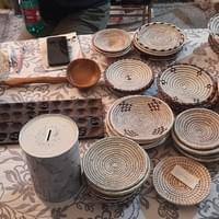 Meme Kulu Nathalia is passionate about her project, one of the oshimbali offered at events in Italy. The oshimbali is a traditional wicker basket, perfect for holding various objects. In the Vambo culture, it is primarily used to store mahango flour or as a support for dishes.