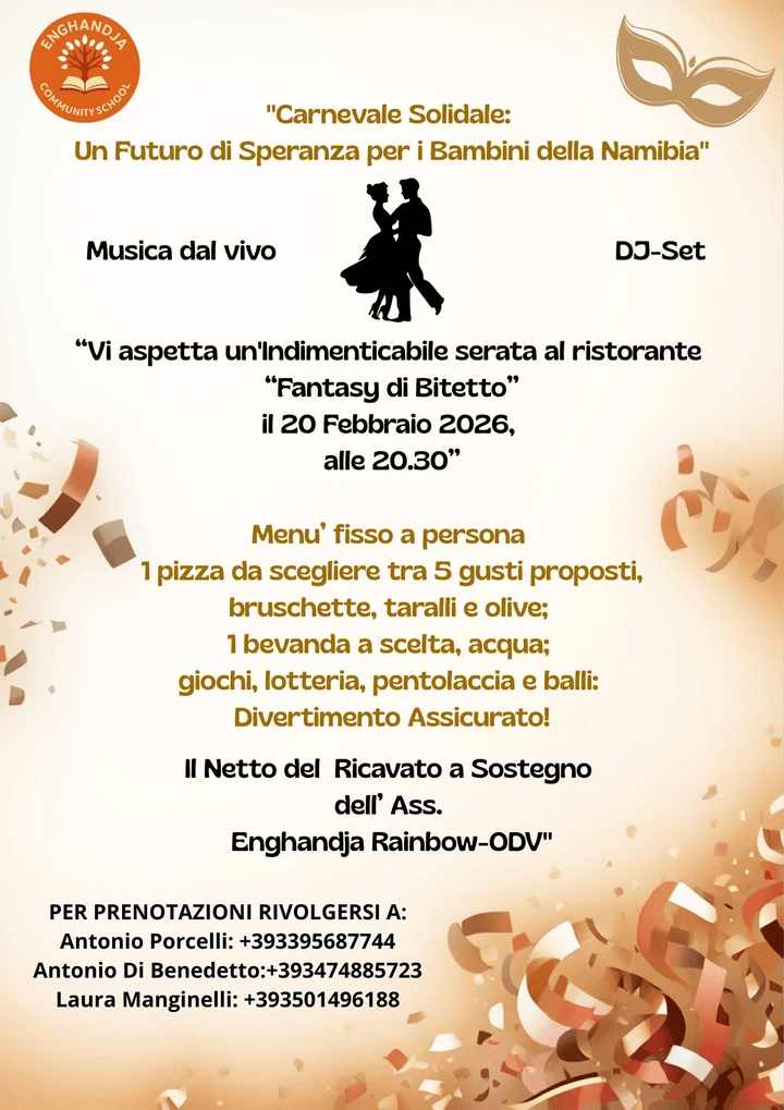 Like every year, the Agricultural Fair was held in Sammichele di Bari, where merchandise from the Enghandja Village was sold. This event not only strengthened ties with the local community but also raised essential funds to support educational projects in Namibia.
